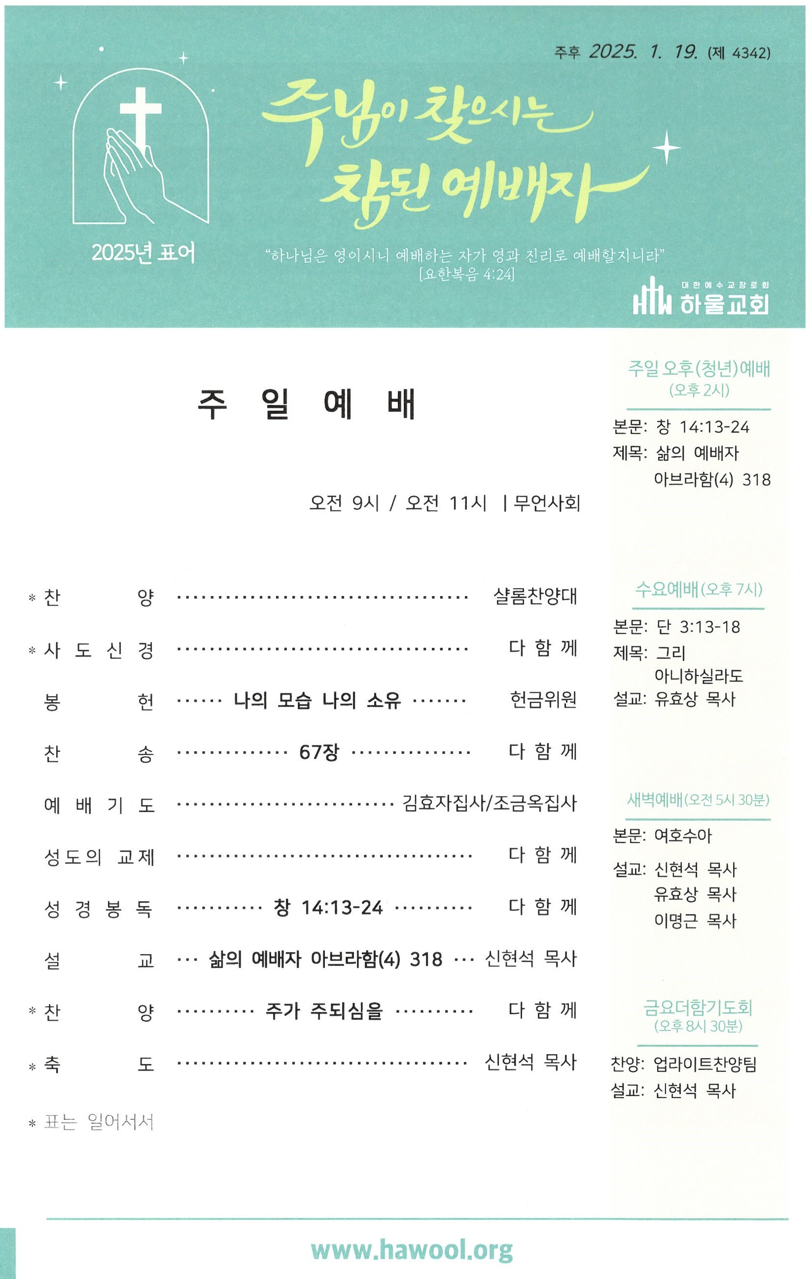 2025년 1월 19일 주일예배 주보