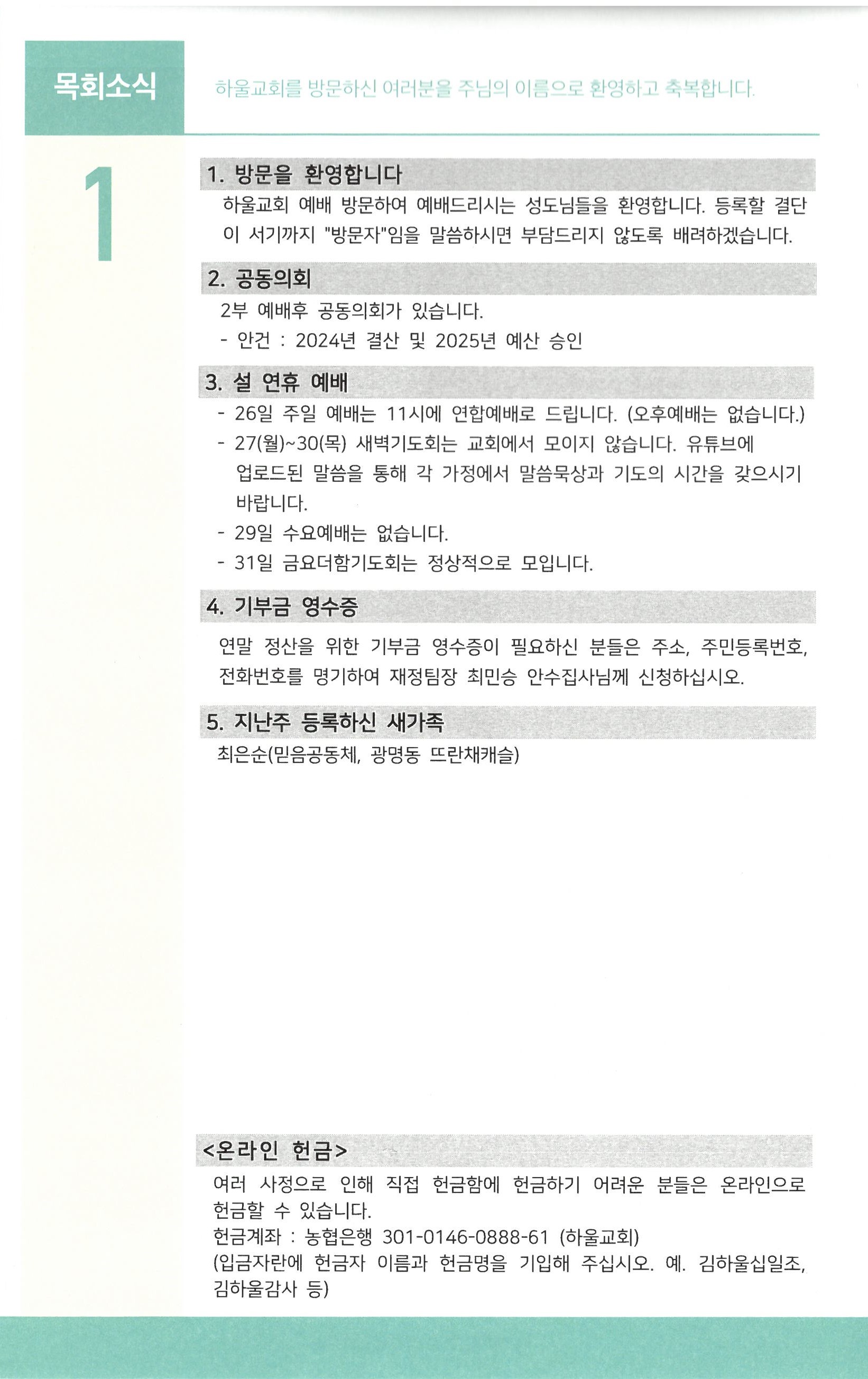 2025년 1월 26일 주일예배 주보
